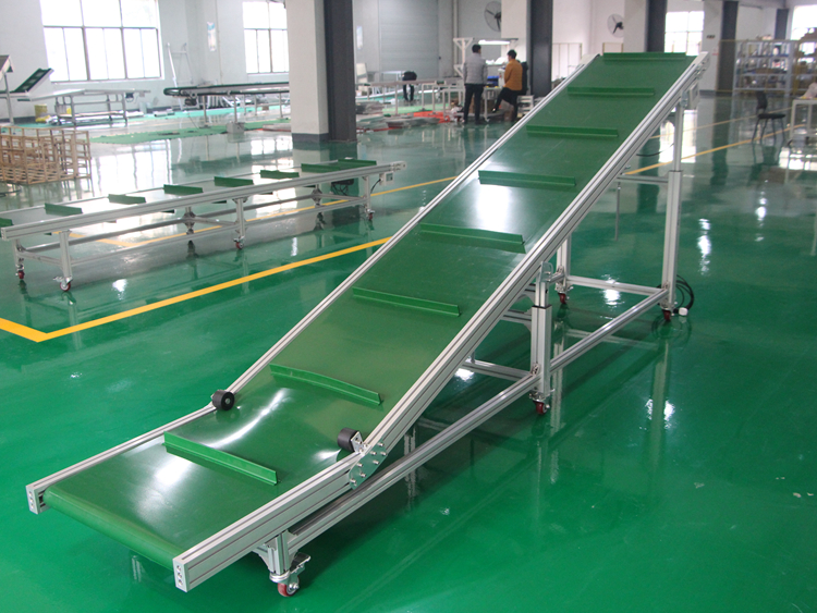 爬坡輸送機的輸送傾角大,最大可達(dá)90°,是大傾角輸送和垂直提升的理想設(shè)備。因此可以節(jié)約占地面積,節(jié)省設(shè)備投資和土建費用,取得良好的綜合經(jīng)濟效益。